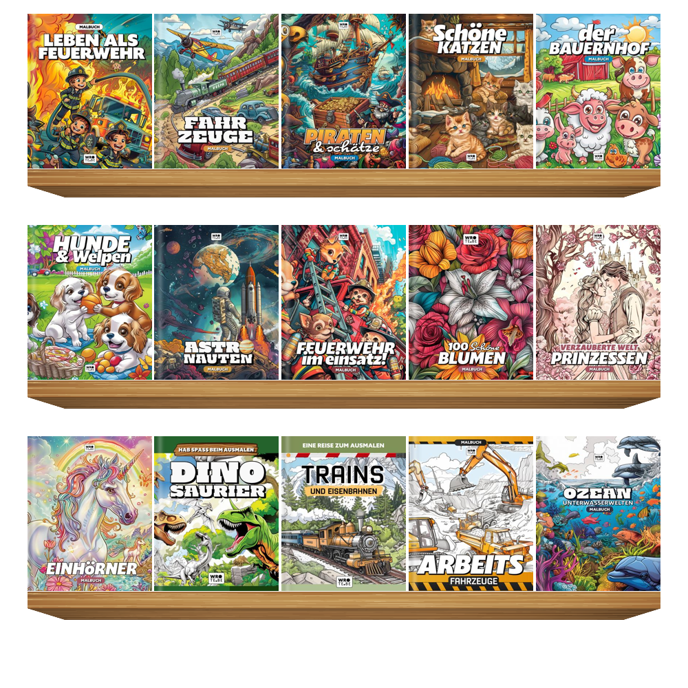 Schließen Sie sich den Tausenden von jungen Künstlern an, die bereits die Freude und Begeisterung unserer Malbücher entdeckt haben! Jede Seite bietet eine einzigartige Gelegenheit, Kreativität zu erkunden, mit Zeichnungen, die die Fantasie der Kleinsten verzaubern und anregen.
