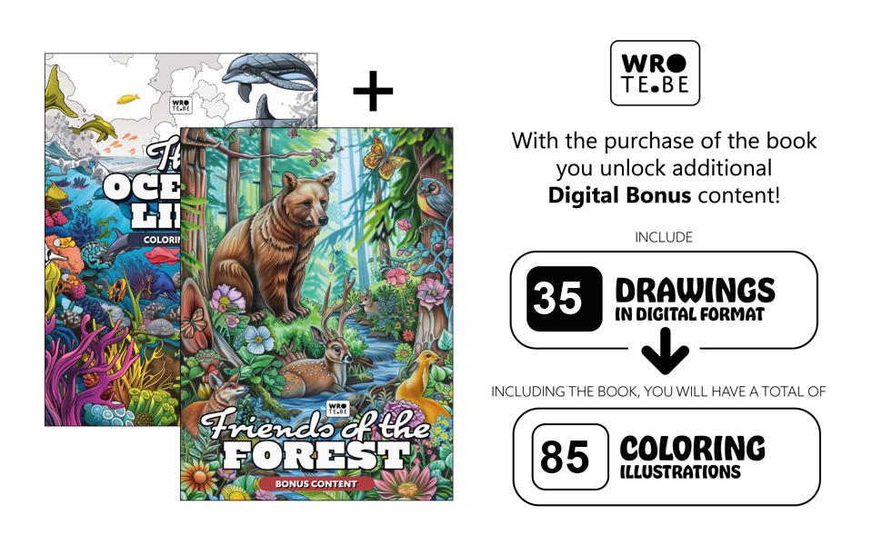 But there’s more! With the purchase of the book, you unlock fantastic bonus digital content: 35 additional images ready to be downloaded and colored. This digital treasure significantly expands the collection, enriching the creative experience and offering even more opportunities for fun and learning. Vibrant and detailed images await to be discovered and transformed into works of art.